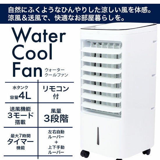 家庭用冷風扇 ウォータークールファン 猛暑に負けない冷風機 送風口が広く、水を利用してさらに涼しい風を送れる冷風扇。