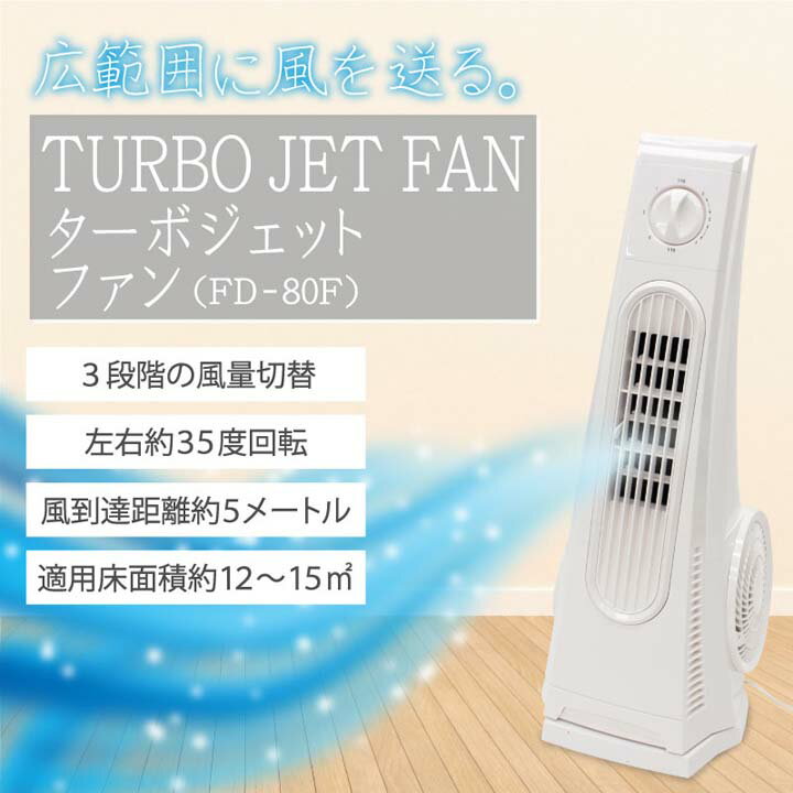ターボジェットファン FD-80F送料無料 ファン 扇風機 スリム コンパクト 空調 夏物家電 サーキュレーター 季節家電 冷風機 タワー扇風機 風向調整可能 首振り機能付 冷風扇 広範囲 ヒロコーポレーション 【D】 新生活