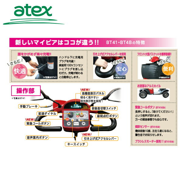 【キャッシュレス5%還元対象品!】【アテックス】atex 電動車椅子 マイピア BT4B(G・R)